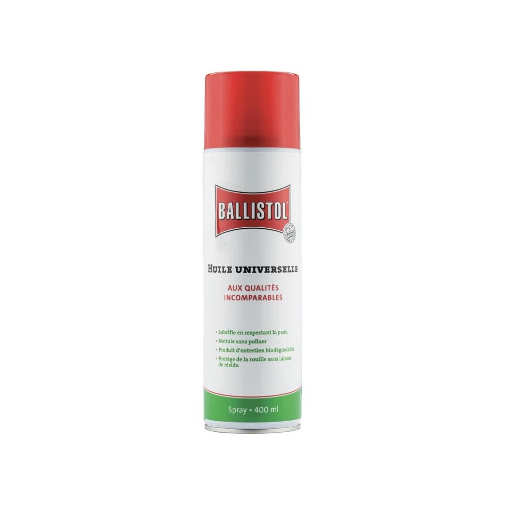Ballistol protège de la rouille, lubrifie, nettoie, et agit sur les résidus de poudre, les dépôts de plomb, de cuivre et de tombac. Il pénètre dans les plus petites fissures, dissout les résidus et résines provenant de l’usage d’huiles inadéquates. Il neutralise les résidus acides de combustion. Aérosol de 400ml.