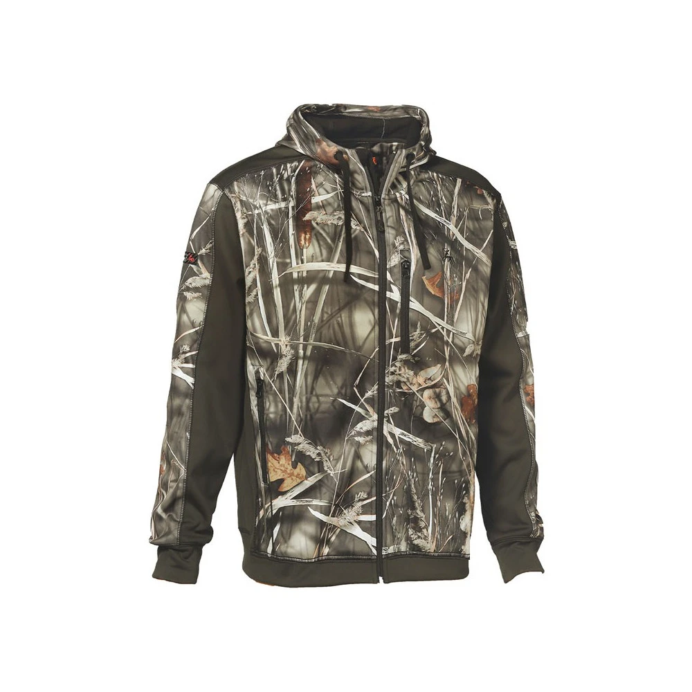 Son camouflage roseaux Ghost Wet couplé aux inserts kaki offre à ce blouson un design élégant. Confectionné en polyester avec une doublure intérieure en polaire lui permet d’être polyvalent tout au long de la saison. Le blouson Wolf est équipé d’une capuche imprimée du motif de camouflage à l’extérieur et kaki à l’intérieure, il est doté de deux poches basses et d’une poche zippée à la poitrine. Le blouson Wolf, signé Ligne Verney Carron est également brodé du logo Pro Hunt en large dans le dos.