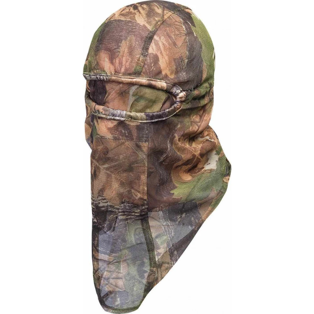 Cagoule très légère fabriquée en mesh imprimé du motif de camouflage bois English Oak. Des élastiques sont présents dans l’ouverture des yeux ainsi qu’un élément plus rigide modulable au nez pour permettre aux porteurs de lunettes de porter cette cagoule sans être gênés. Le filet devant les yeux est amovible.