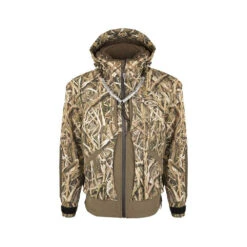 Le devant de la casquette est kaki, il est brodé du logo représentant une tête de canard Drake Waterfowl. L’arrière de la casquette est réalisé en mesh de coloris noir.