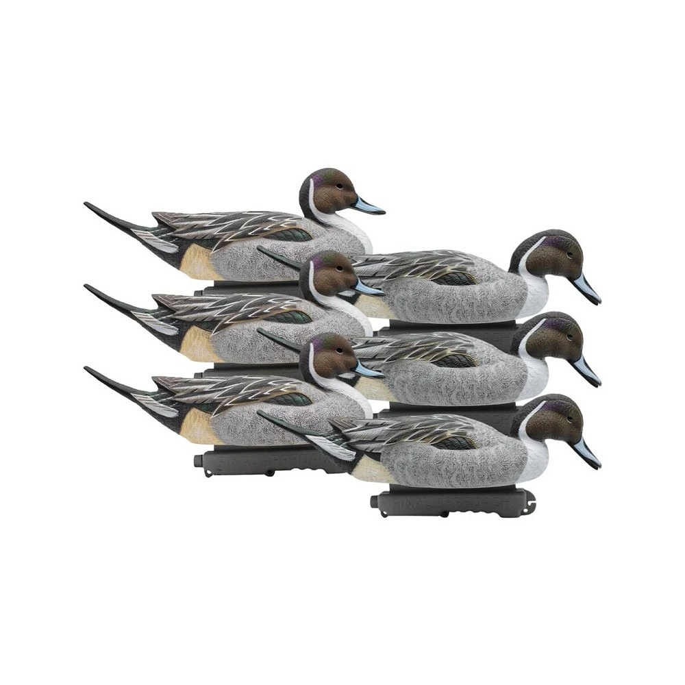Les formes de canard pilet Final Approach proposent un incroyable niveau de détails. De l’extrémité du bec à la pointe de la fameuse « queue d’hirondelle », tous les détails du plumage du canard pilet ont été reproduit avec une grande fidélité. Les blettes Final Approach sont réalisées en plastique semi-rigide qui leur confère durabilité. Le pack est constitué de 3 formes de pilet mâle au repos et 3 mangeurs.
