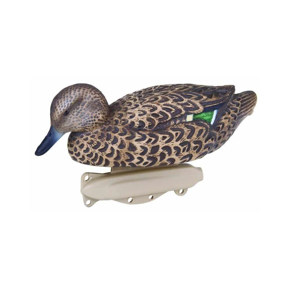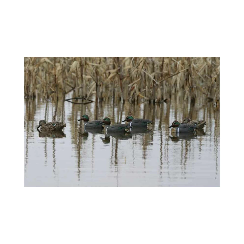 En plus de cette peinture UVision qui permet de refléter les rayons UV et non plus de les absorber, les formes de sarcelles proposent différentes attitudes. Ces postures très naturelles sur l’eau sont accentuées par les multiples points d’ancrages disponibles sur la quille lestée qui vous permettent d’attacher la corde plombée à différents endroits. Les packs sont constitués de 4 mâles et 2 femelles (ou 8 et 4 pour les lots de 12 formes).