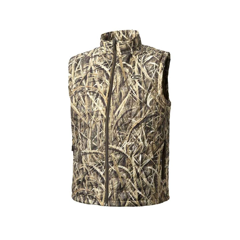 Le gilet Down Pac est ultra-léger et compact mais aussi très isolant. Conçu en polyester, il est rempli d’une isolation synthétique de 150g qui vous protégera efficacement du vent et du froid. Le gilet Down Pac se repli dans sa poche, vous pourrez ainsi facilement le ranger dans votre sac d’affût ou de hutte. Traité déperlant, le gilet résistera également aux pluies fines. Il est doté de deux poches basses zippées. Le gilet Down Pac Drake Waterfowl est imprimé du camouflage Shaddow Grass Blades.
