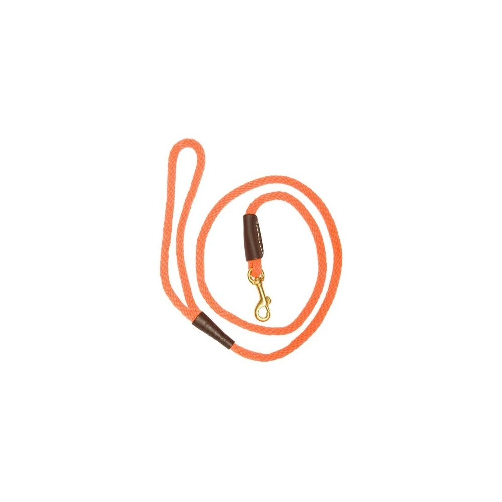Laisse pour chien de chasse en polypropylène avec inserts en cuir cousus. Orange fluo. Marque Country. Deux longueur au choix : 120 ou 180 cm. Diamètre : 1 cm.