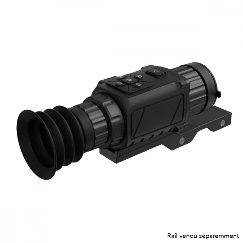 Adapté sur une arme grâce à son rail de montage, l’appareil HikMicro Thunder TH35 permettra des tirs précis dans toutes les conditions, par nuit noire comme à travers le brouillard. Son capteur thermique à haute sensibilité et son NETD inférieur à 35 mK permettent une détection de la moindre source de chaleur jusqu’à plus de 1200 mètres. L’image transmise sur l’écran OLED d’une résolution de 1024 x 768 offre une identification nette et certaine de la cible. Enfin, démonté de l’arme, le Thunder TH35 peut-être utilisé en simple monoculaire.