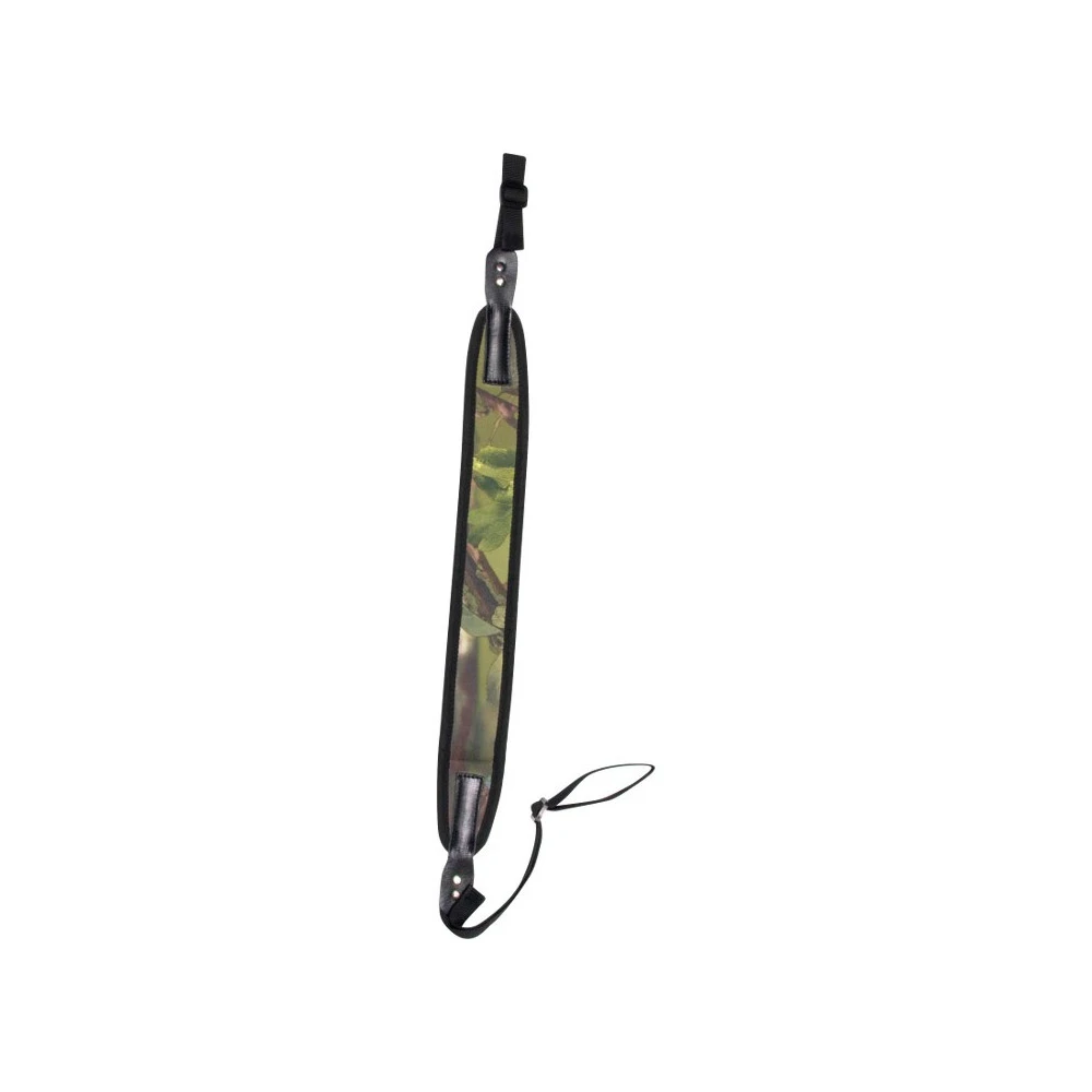 Sangle d’épaule pour fusil de chasse réglable de 69 à 107 cm. Insert en néoprène confortable à l’épaule et imprimé du motif de camouflage bois.