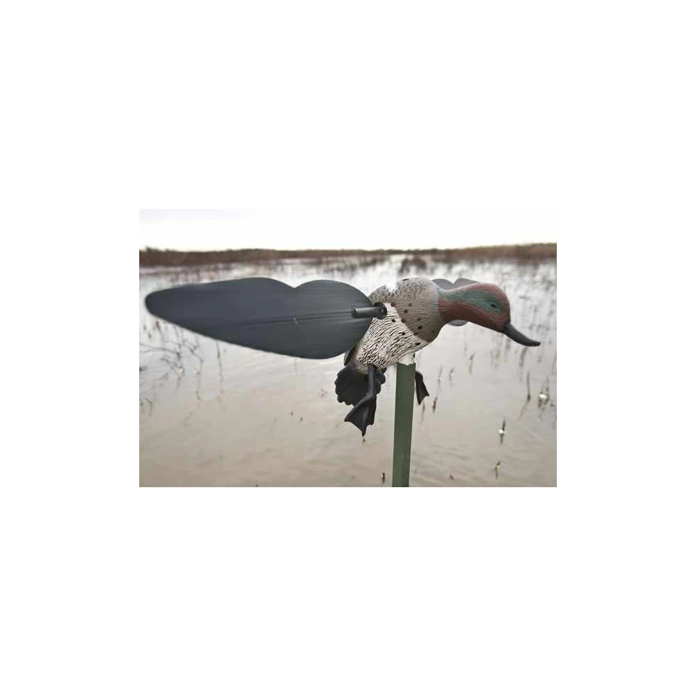 MOJO est le fabricant américain de référence pour les formes motorisées. Ses formes de canard colvert ont rencontré un franc succès bien au delà des frontières, l’efficacité de ces blettes a séduit les chasseurs du monde entier. En France, les sauvaginiers se sont vite rendu compte que ces petites machines s’avéraient très efficace également sur les limicoles. Plus la rotation des ailes est rapide, plus l’effet d’attraction est fort. La forme de sarcelle à ailes tournantes Mojo dispose d’un nouveau mécanisme développé par la marque. Le moteur, très silencieux, est plus puissant mais aussi moins gourmand en batterie. Il fonctionne à l’aide de 4 piles AA pour une autonomie d’environ 16 heures. Les ailes fabriquées en plastique très léger permet d’accroitre la durée de vie des batteries.