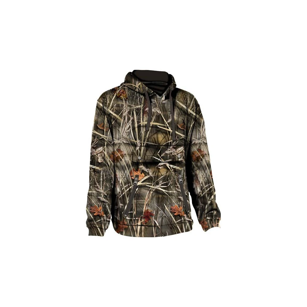 Sweat à capuche imprimé du camouflage aux motifs roseaux Ghost Wet. Conçu en polyester, le sweat est doté d’une poche kangourou zippée sur les côtés ainsi qu’une large poche ventrale ouverte sur le dessus.