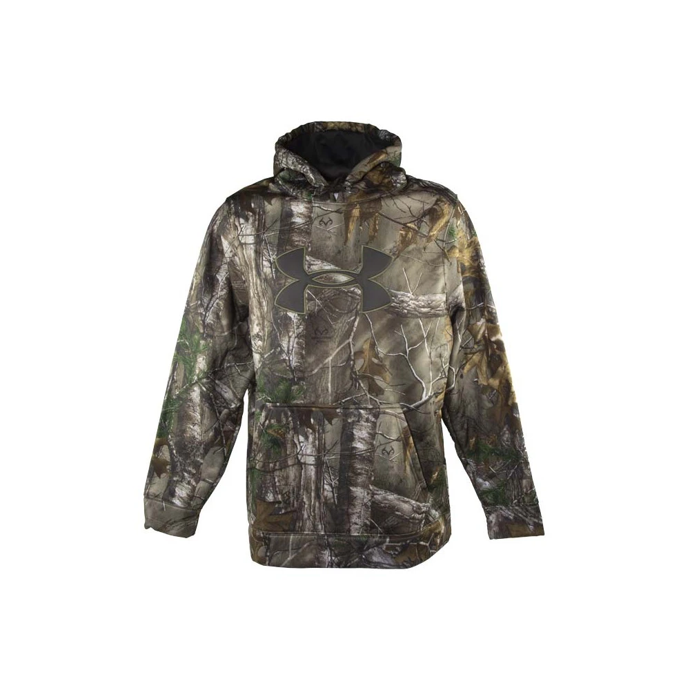 Sweat Under Armour imprimé d’un motif de camouflage bois. Doublé polaire, poche kangourou et capuche avec cordons de serrage.