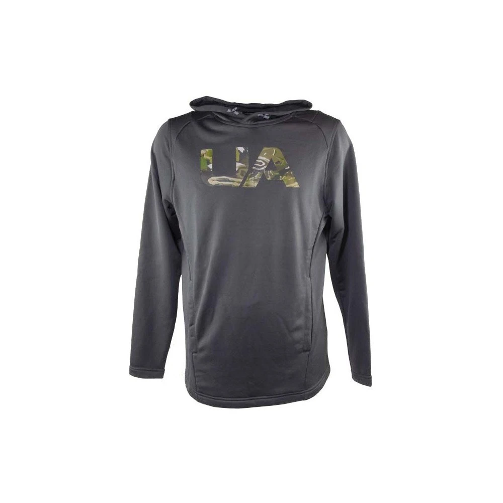 Sweat Under Armour léger de coloris gris avec le logo UA camo sur le devant. Poche kangourou et capuche avec cordons de serrage.