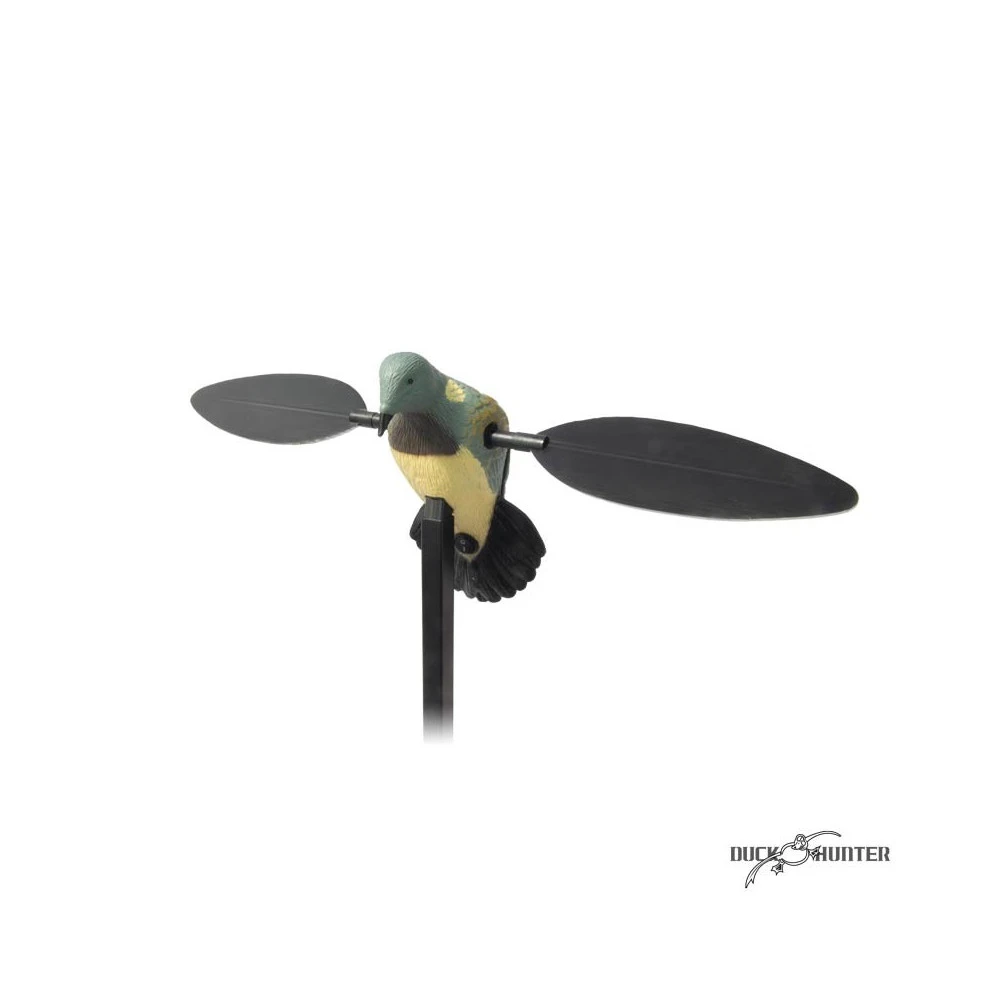 La tourterelle à ailes tournantes est un appelant polyvalent. Efficace sur les colombidés, elle s’avère également redoutable sur nombre de limicoles. Le modèle Duck Hunter fonctionne à l’aide de 4 piles AA. Les ailes, noires et blanches, sont aimanté sur l’axe du moteur. L’appelant est livré avec un piquet en 3 éléments d’une hauteur totale d’environ 80 cm.